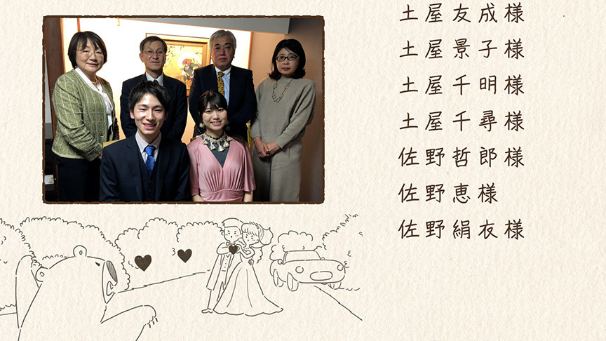 またゲストが少数の場合は、コメント追加(5,800円+税)をご注文いただき、ゲストおひとりおひとりにメッセージを伝えていただくこともおすすめしております。