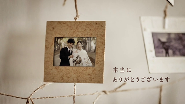 アンティーク調のフォトフレームで柔らかい雰囲気を演出。落ち着いたお二人にぴったりのムービーです。