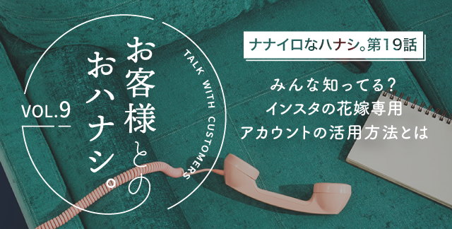 「ナナイロなハナシ。」第19話は、お客様インタビューvol.9をお送りします!今回ご協力いただいたのは一ノ瀬様ご夫妻。コロナ禍の結婚式やInstagramの活用法についてお伺いしました!