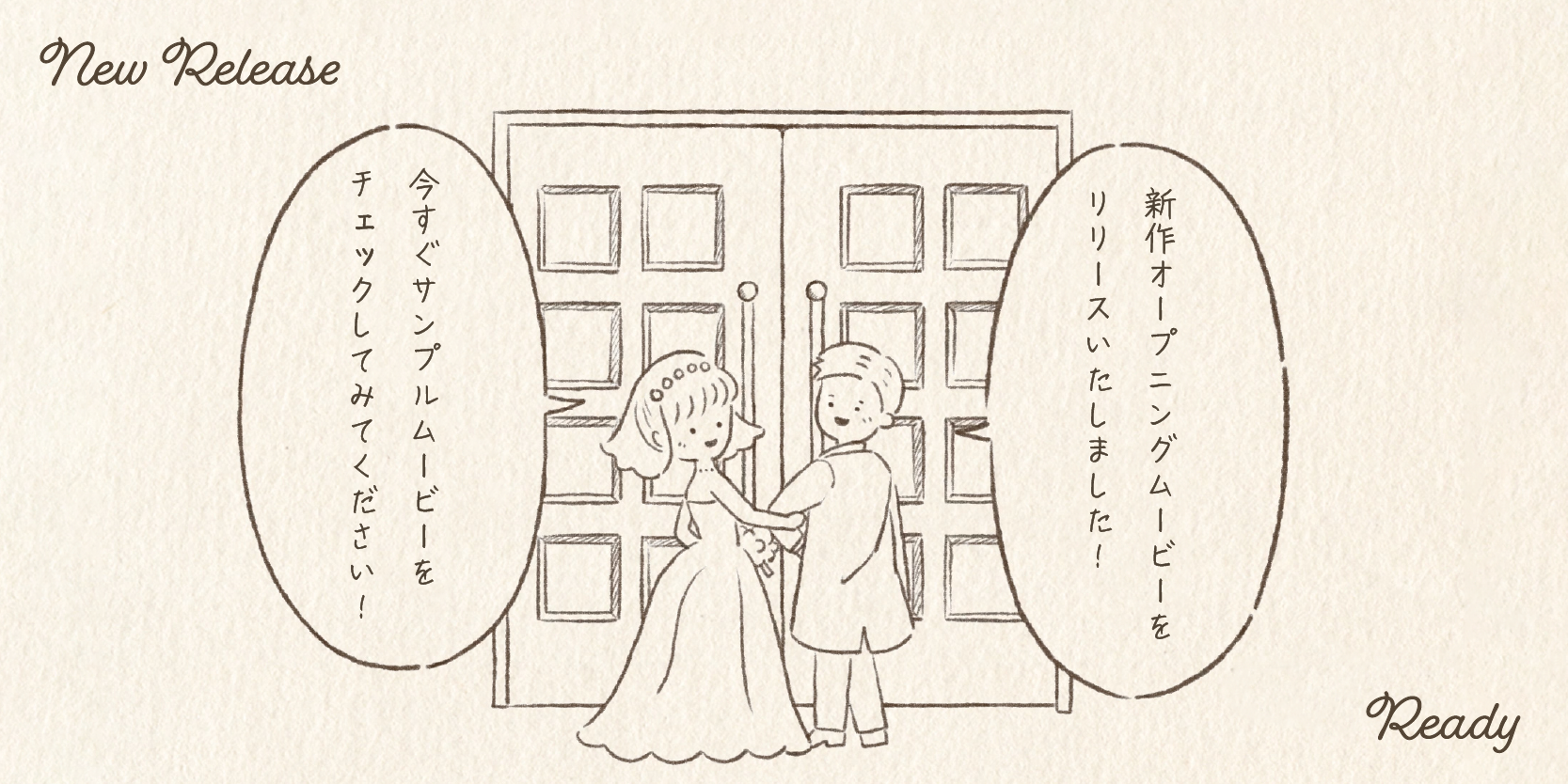 新作オープニングムービー『Ready(レディー)』をリリースいたしました!かわいらしい手描きイラストのアニメーションが、披露宴開始前のワクワクした気持ちを高めてくれるムービーとなっております。