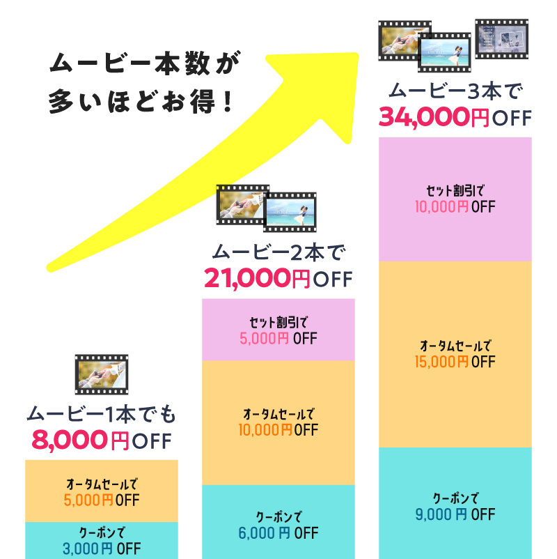 ご注文ムービー本数に応じて使えるクーポンをご用意しました✨️クーポンとセット割引は併用可能!