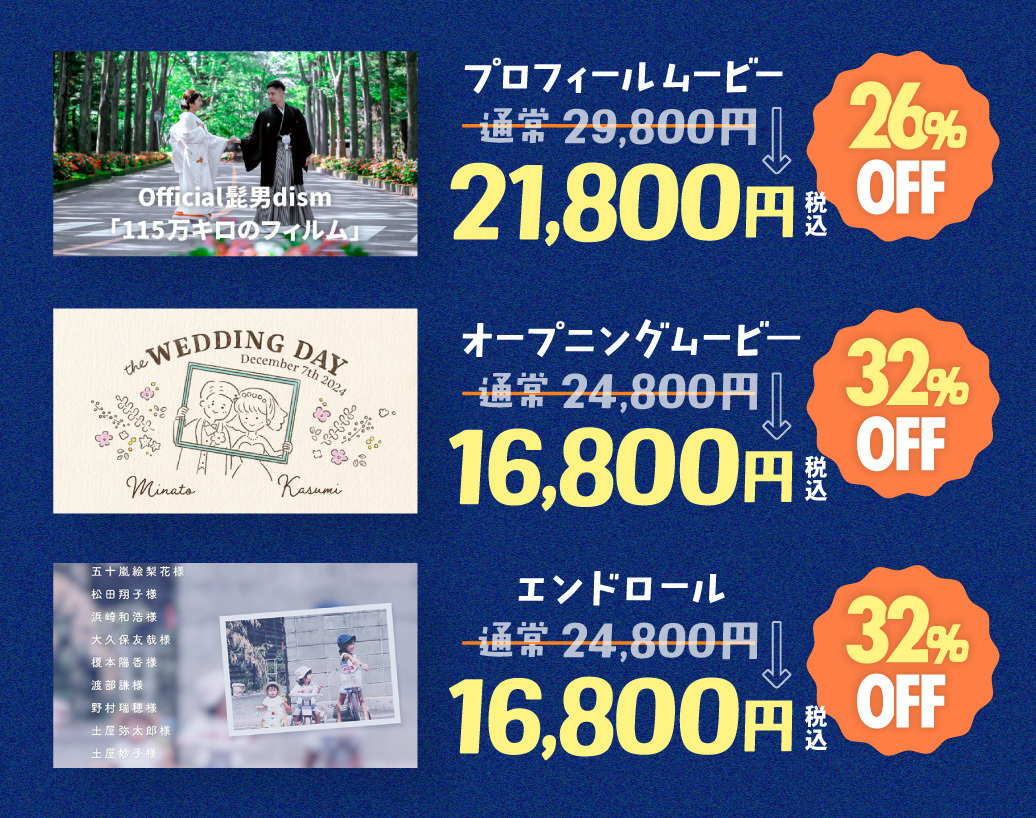 - プロフィールムービーを含むご注文がセット割引対象です。