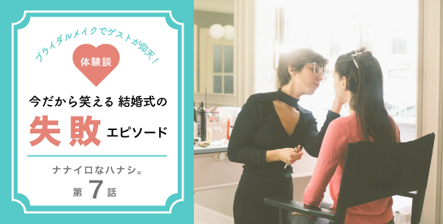 今回の「ナナイロなハナシ。」第7話は、結婚式で実際に起こった新郎新婦の失敗エピソードをお送りします。先輩花嫁にアンケートでお答えいただいた、ちょっと笑えるおハナシをどうぞ。