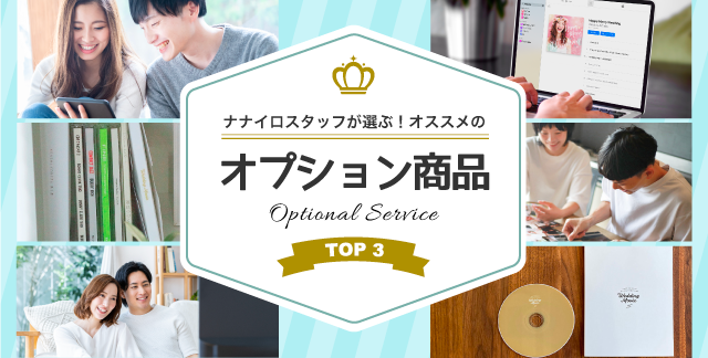 楽曲の代行購入や動画挿入など、他にも様々なオプションサービスをご用意しております。ムービーのご注文後でも追加でお申し込みいただけますので、ご希望の場合はマイページのオプション追加よりお願い致します。