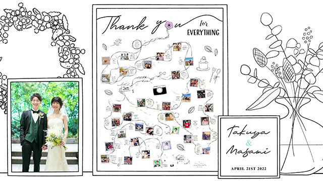 「結婚・永遠の愛」の花言葉に持つ『ツタ』がモチーフの作品で、ツタの成長と共にお二人の歴史をたどっていきます。最後には映像全体がウェルカムスペースになる、驚きの演出が隠されています!