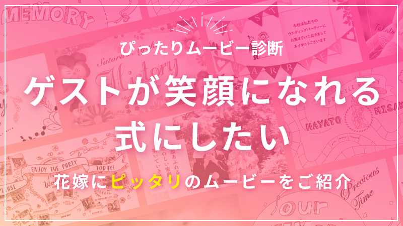 お二人がコミカルなアニメーションで動く、ポップなムービーです。にぎやかな雰囲気の結婚式にぴったりです。