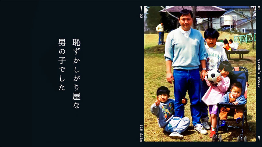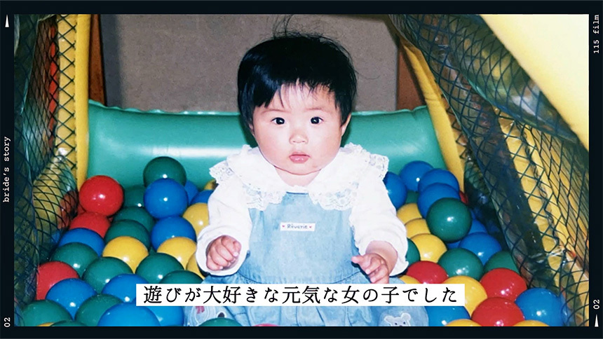 写真が大きく表示されるので見やすいデザインです。フィルム調でどこか懐かしさもありながら、音ハメで魅せる現代感のある映像は、幅広い世代のゲストに楽しんでいただけます。