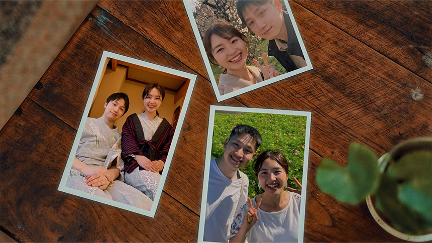 二人の日常を描いた実写映像を挿入することで楽曲の世界観を表現し、本物のMVのような仕上がりに! 映像と音楽がぴったり合わさりテンポよくお写真を紹介していくので見ていて気持ちの良い作品です。