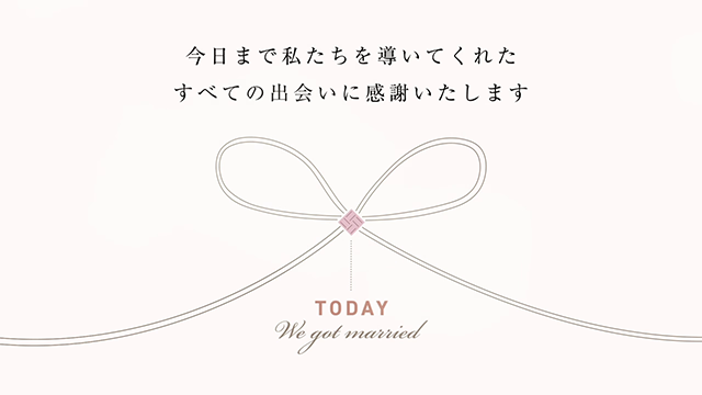 水引にはひもを引いて結ぶことから「人と人を結びつける」という意味が込められており、両家の大切なご家族やご友人が集まる結婚式の場にふさわしいムービーとなっています。