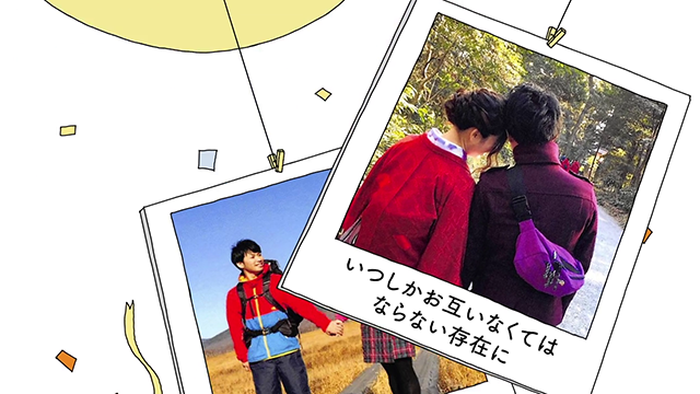 招待状を出すシーンからストーリーが始まり、結婚式に向けた身支度をする新郎新婦の姿と共に、生い立ちを振り返ります。