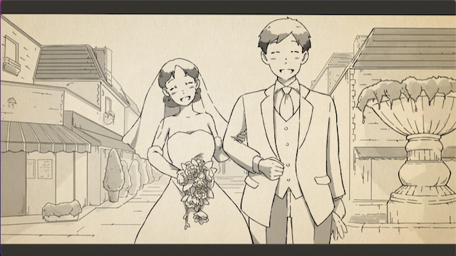 貸切りの映画館で、お二人のために作られた特別作を上映するシチュエーションをイメージ。お二人の生い立ち、出会いの軌跡をパラパラ漫画表現とともに振り返ります。