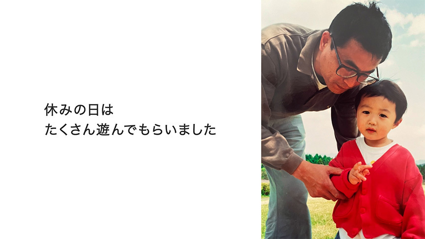 冒頭はユニークなシーンですが、生い立ちパートのスライドショーはシンプルな構成となっています。